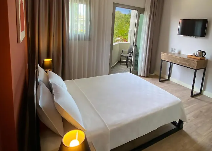 Yucel Balik oferă mâncăruri din bucătăria mediterană și este situat la aproximativ 5 minute cu mașina de acest hotel.